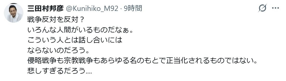【難癖】72歳俳優・三田村邦彦が私見「戦争反対を反対?こういう人とは話し合いにはならないのだろう。悲しすぎる」