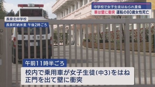 【静岡】中学校の敷地内で乗用車が女子生徒をはねた後壁に衝突 運転していた80歳の女性は死亡 同乗していた男子生徒は軽傷 はねられた女子生徒は重傷