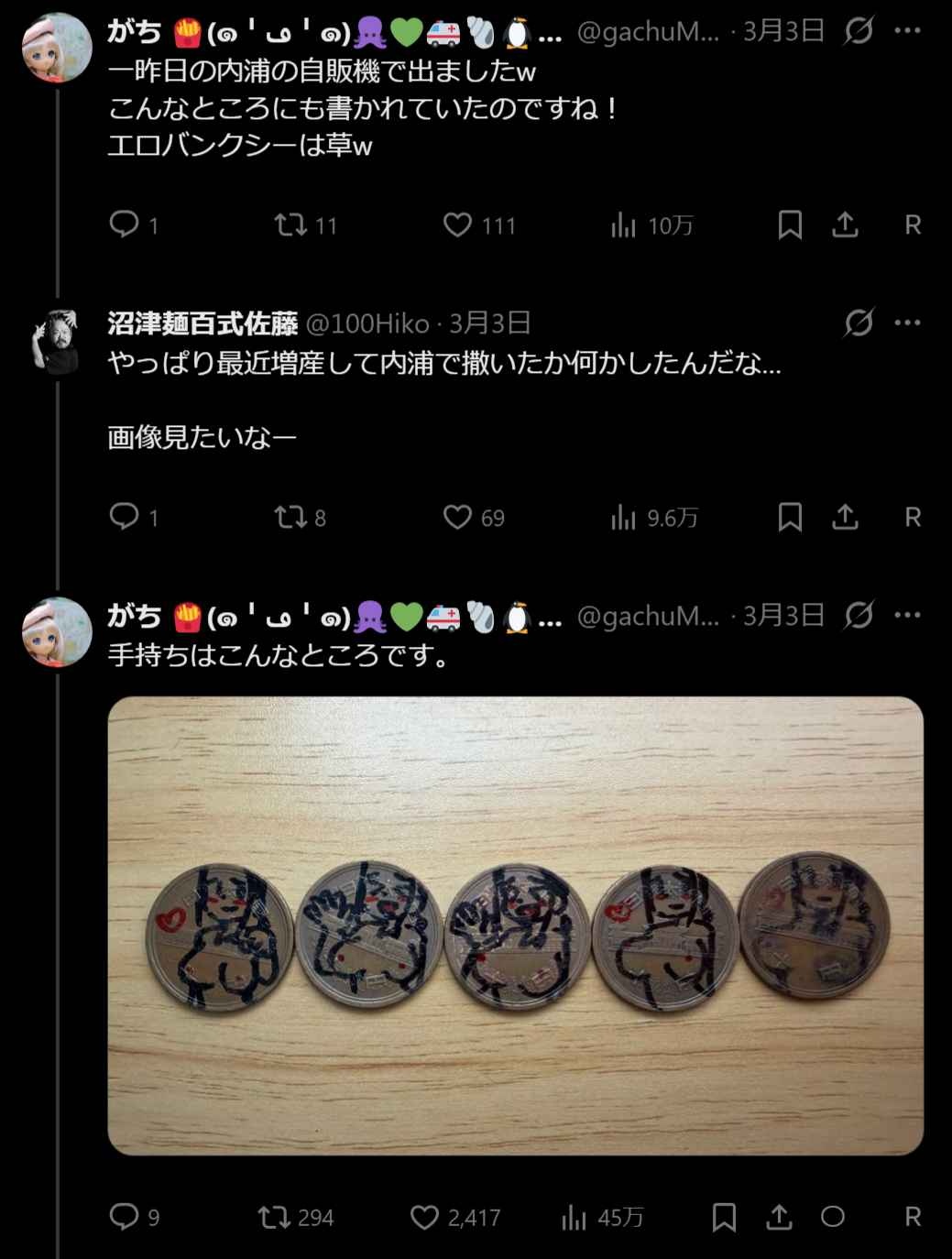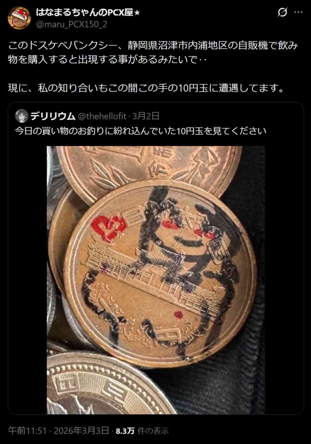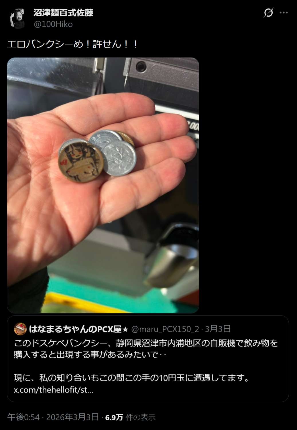 財布の中を見たら、エ口バンクシーのえっちな10円玉があった。いつの間に手に入れてたんだ?