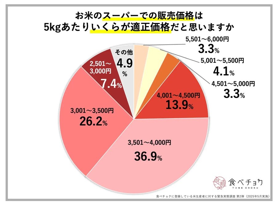 【食べチョク・全国の米生産者121人調査】農家が望むお米の適正小売価格は? 61・5% 「5キロ 3501円~6000円」