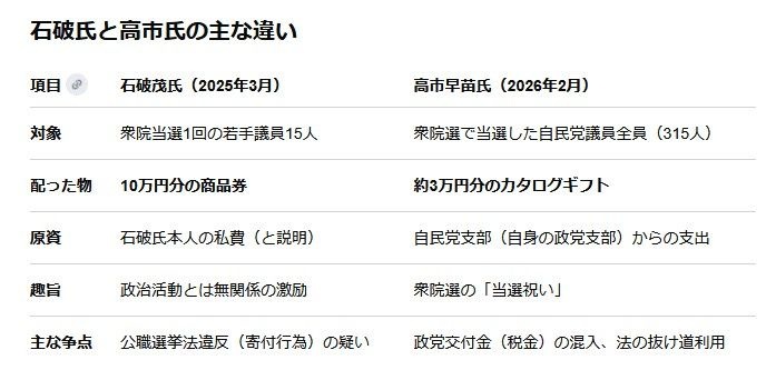 https://mainichi.jp/articles/20260225/k00/00m/010/125000c「石破さんの時、問題になったのに」国民・玉木氏、首相のカタログ問題は「合法」も苦言