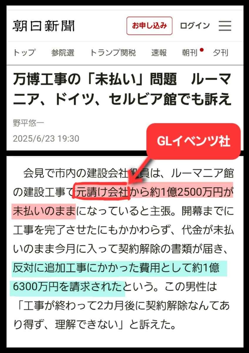 大阪・関西万博のパビリオンで3億円超の工事代金未払いを出したGLイベンツ社とは