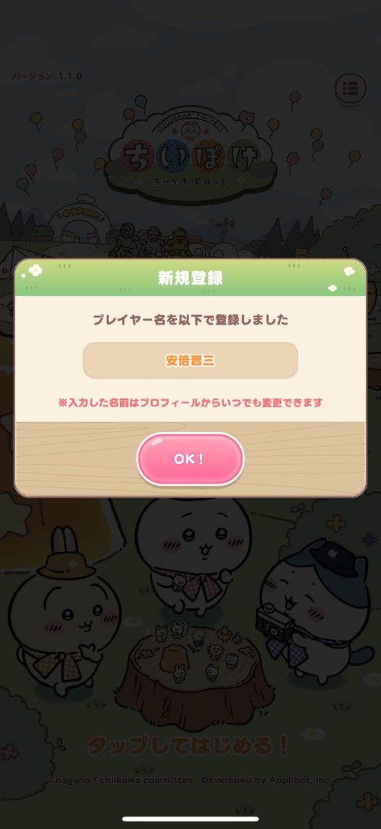 ちぃかわポケット「安倍晋三は不快な名前」新規登録ブロック→その後謝罪、登録可能に