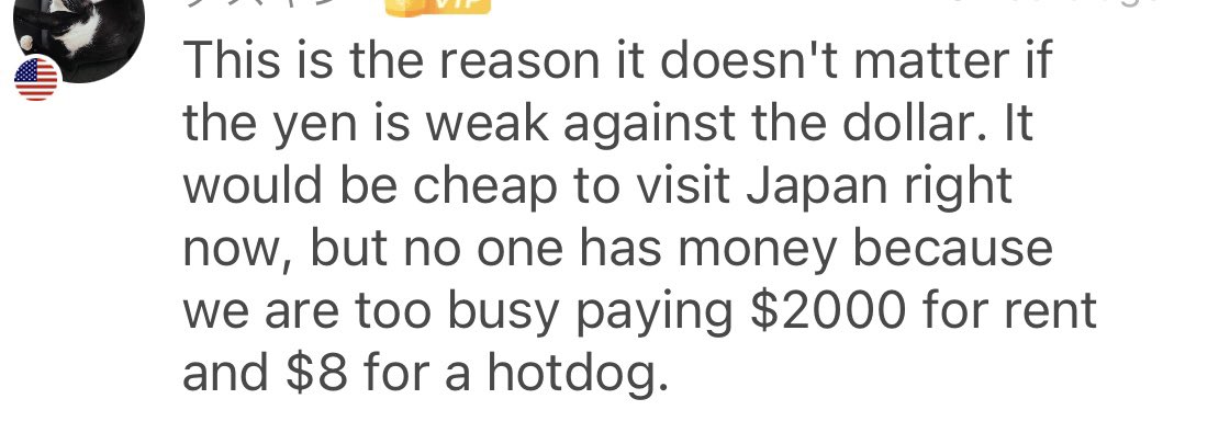 クララ|高配当ゆる投資 (@KabuClara) on Xこれをhello talkで呟いたらめちゃコメントきた😂まずマンハッタンは世界の中でも物価が高い方だから仕方がないと笑 中でもこのコメントは面白かった。アメリカの物価が高すぎて、円安なのに、お金がなくて日本に旅行に行けないってさ🤣twitter.com - 85 : 2024/05/03 22:49:53 T5WES