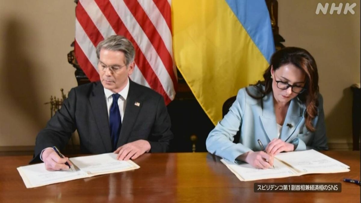 ウクライナのスビリデンコ第1副首相兼経済相は、みずからのSNSにアメリカとウクライナが、鉱物資源の権益に関わる合意文書に署名したと発表しました。