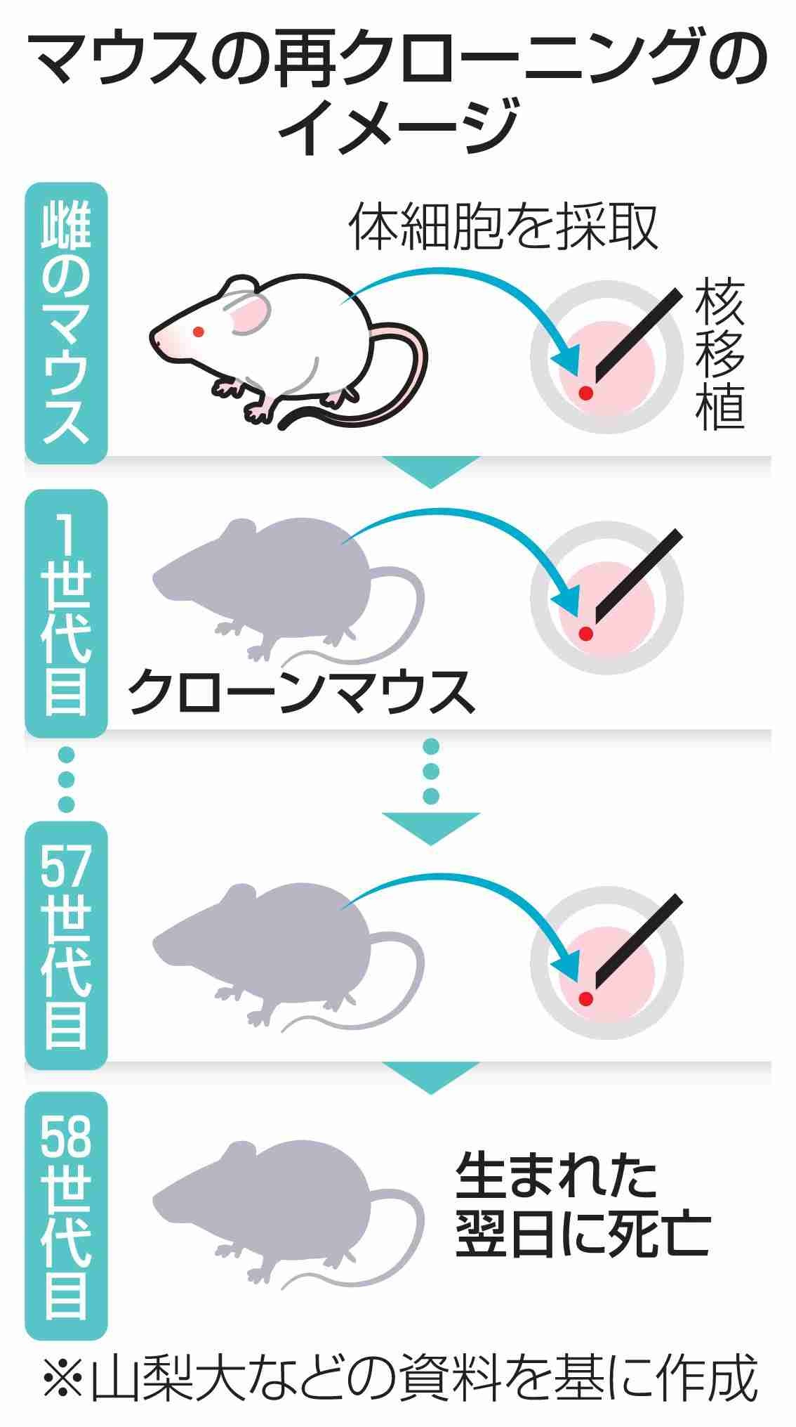クローンは無限に作れない マウス58世代目で限界