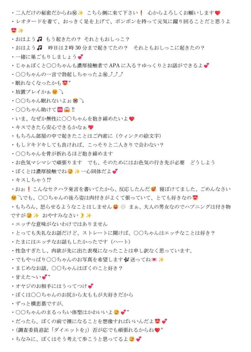 ・セクハラLINEは1000件以上にわたるため一部のみ公開