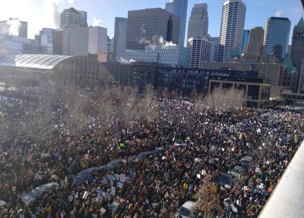 - 700以上の会社がストライキ&学校も停止してほとんどの住民がミネアポリスに集まって連日抗議デモ中