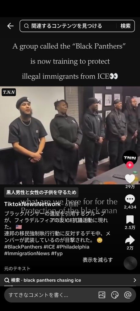 - フィラデルフィアでブラックパンサー党が復活してIceに対抗して自衛武装グループが急拡大してる