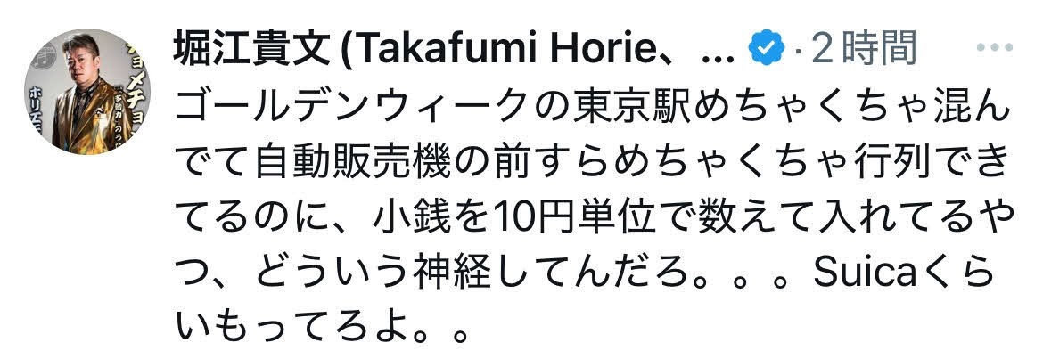 ゴールデンウイーク中の東京駅で起こったことについて、疑問を呈した。https://www.nikkansports.com/entertainment/news/202505030000712.html