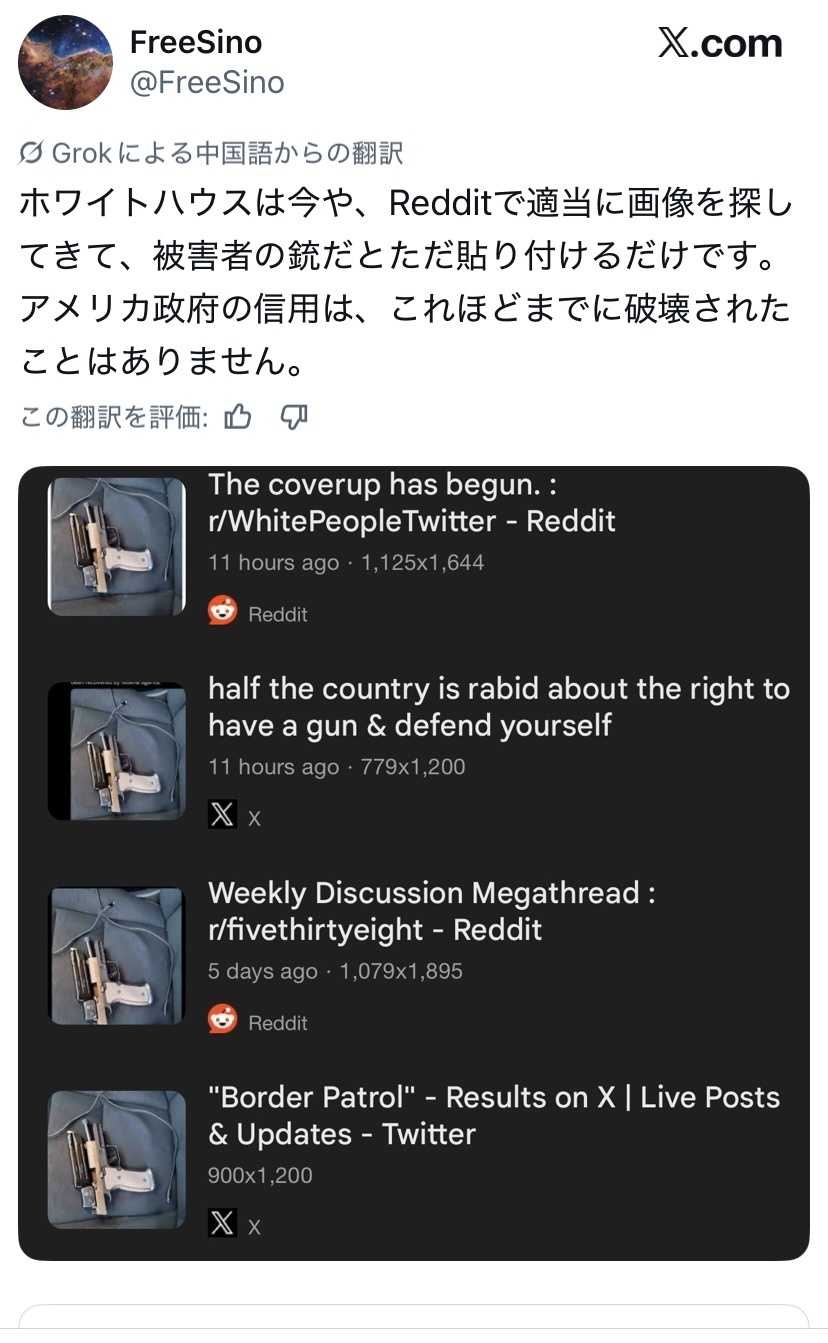 - ホワイトハウス公式はredditから拾った無関係の銃の画像を貼ってドヤ顔
