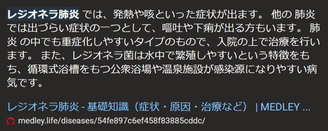 もっと前から汚染はされてたのかもしれんよレジオネラ - 8 : 2025/06/05 19:55:59 kNiI3