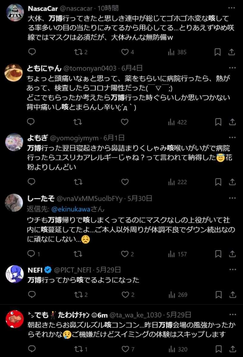 万博に行ってから咳が止まらないという報告が多数出てしまう