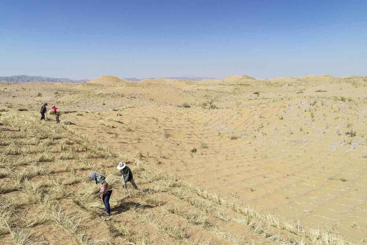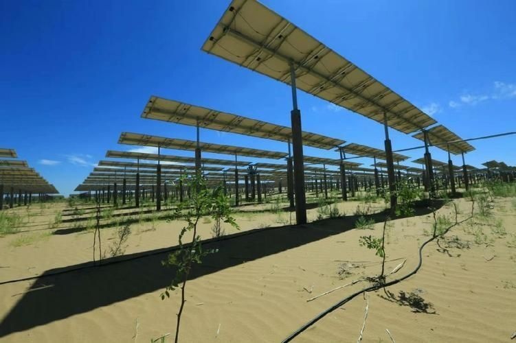 砂塵などが起きると、太陽光パネルが風を撹乱し、パネル設置箇所の砂が削れてしまい、砂塵によってパネルが転倒するなどの事故も起きた。そこで、砂漠周辺に自生をしている灌木の一種である梭梭などを植える試みがなされた。