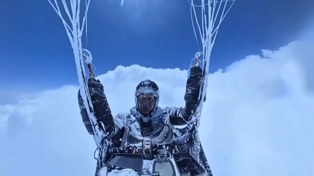 極寒で酸素が欠乏した環境下で、全身が凍りついたが、幸運にも意識的にパラグライダーをコントロールすることができ、無事に着陸し、奇跡的に生還した。