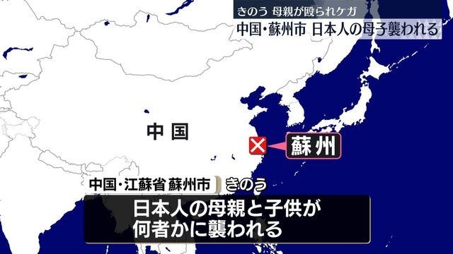 中国・蘇州市で日本人の母子襲われる 母親が殴られケガ(日テレNEWS NNN) - Yahoo!ニュース
