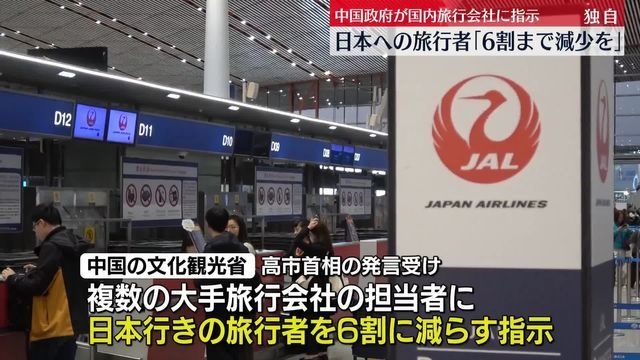 中国政府「日本への旅行者を6割にまで減少を」国内旅行会社に指示