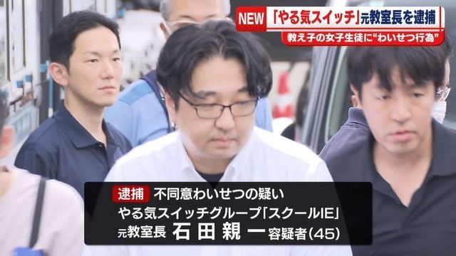 不同意わいせつの疑いで逮捕されたのは、株式会社「やる気スイッチグループ」が運営する個別指導の学習塾「スクールIE」の元教室長・石田親一容疑者(45)です。