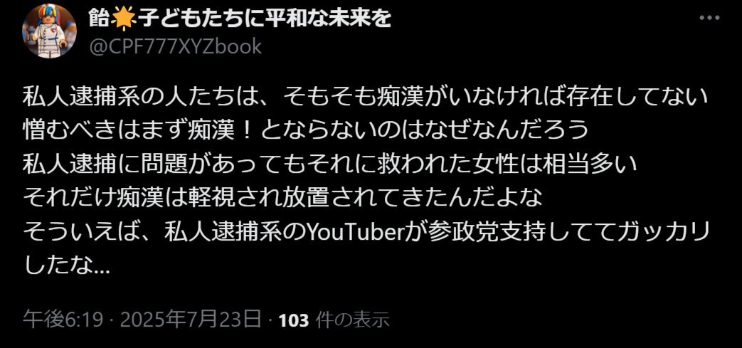 変態はロリコン参政党支持者だよ - 6 : 2025/07/25 10:05:44 gTdIV
