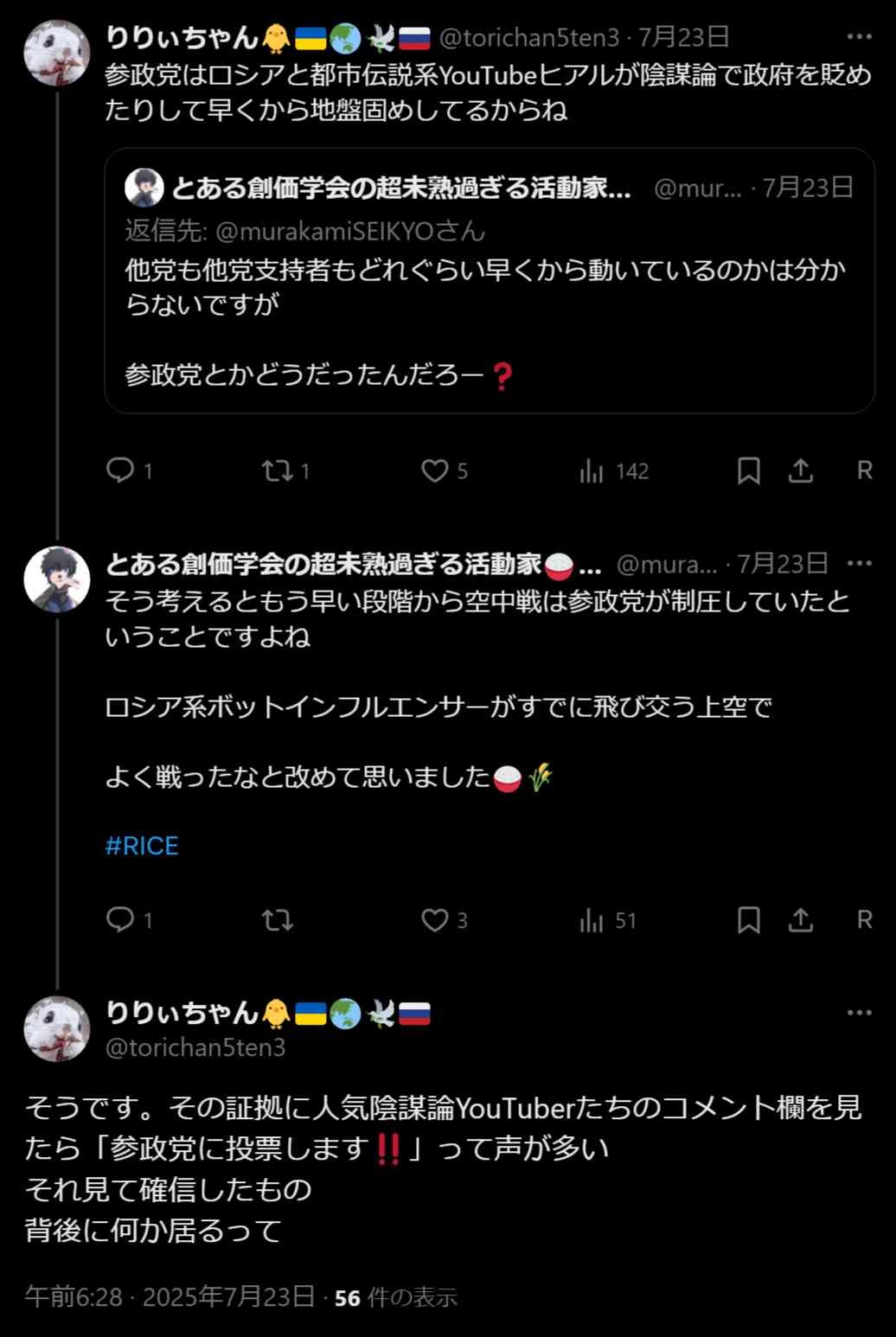 端から見てると参政党信者の事笑えないよな - 22 : 2025/07/25 11:53:29 qPxsx