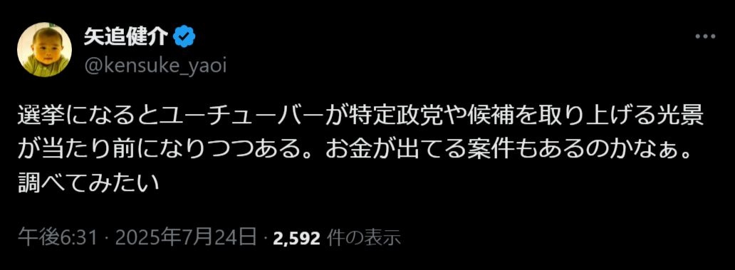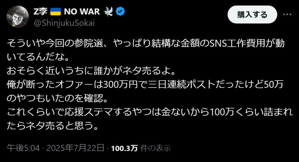 今回の参院選、かなりの額のSNS工作マネーが流れていたもよう