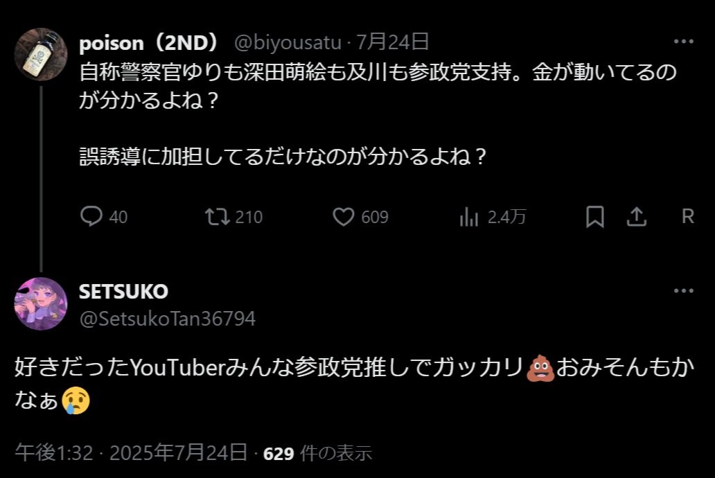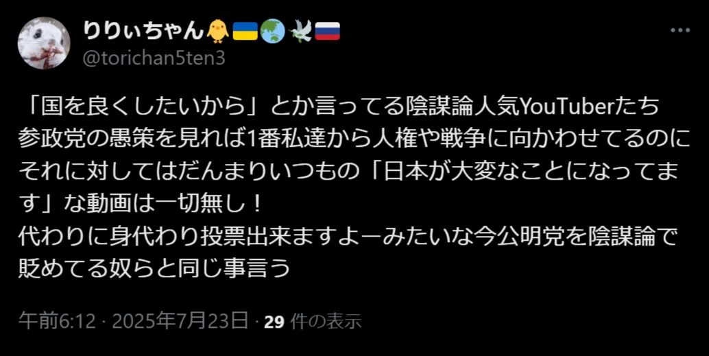 明らかに参政党のことを言いながら投票を促す有名YouTuberもいたらしい
