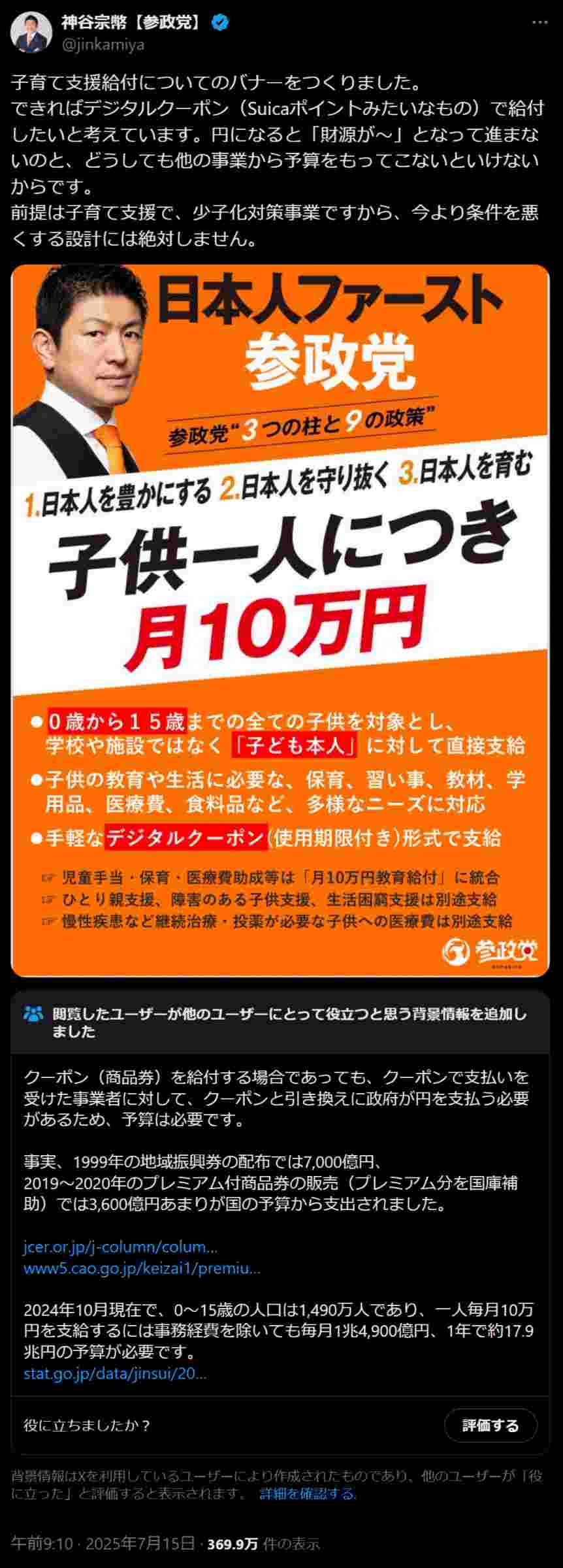 参政党「うちの毎月10万円配る政策は円じゃなくデジタルポイントで配るので財源がいりません!」犬猫「うぉおおおおお!!」(1.3万いいね)