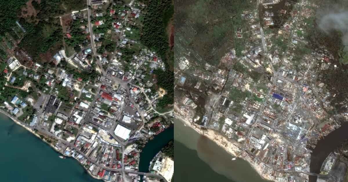 ・衛星画像は、この島が受けた被害の規模を浮き彫りにしている。