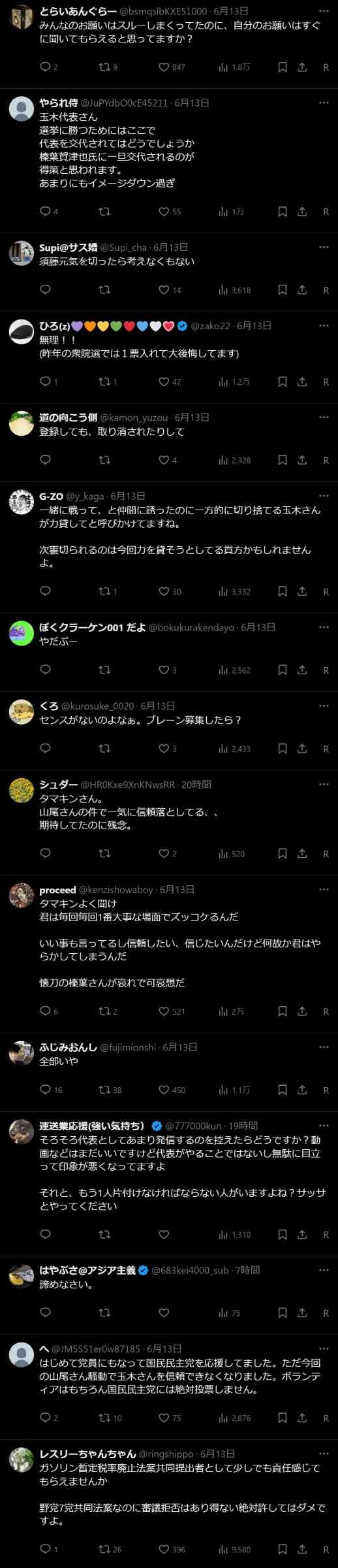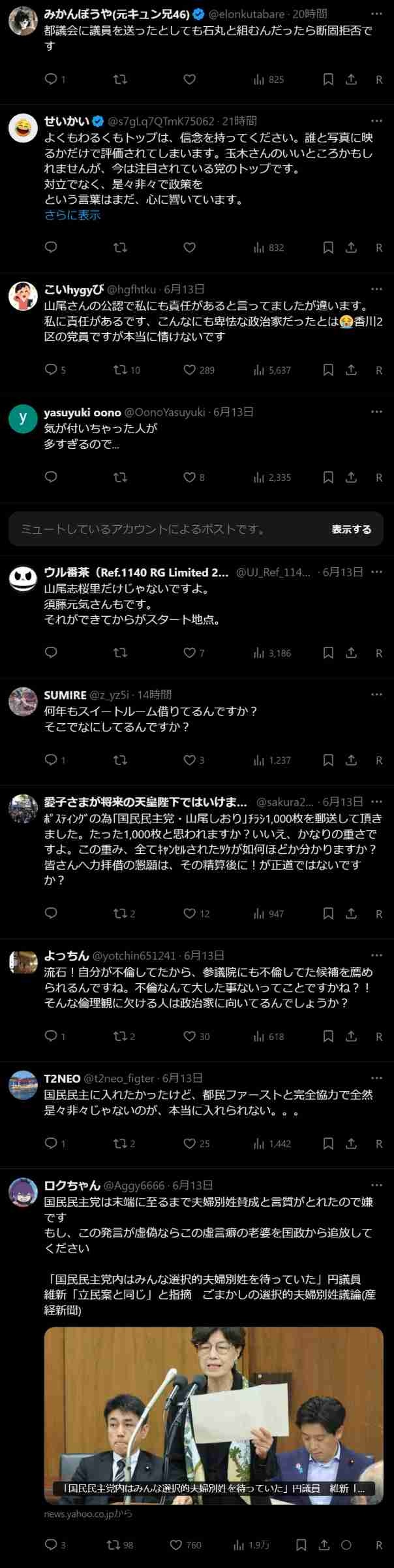 普通に分析したら玉木の言動でこんな支持集まって山尾が支持されないわけないじゃんw - 10 : 2025/06/14 21:07:51 mMcBd
