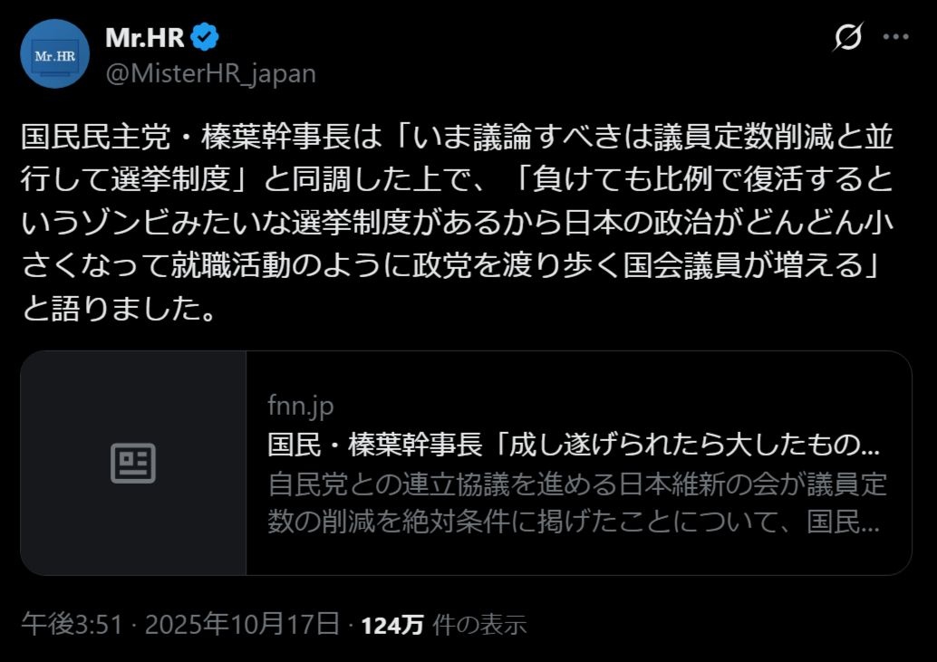 選挙で勝つしかないのよ - 25 : 2025/10/20 08:37:56 KGMHh