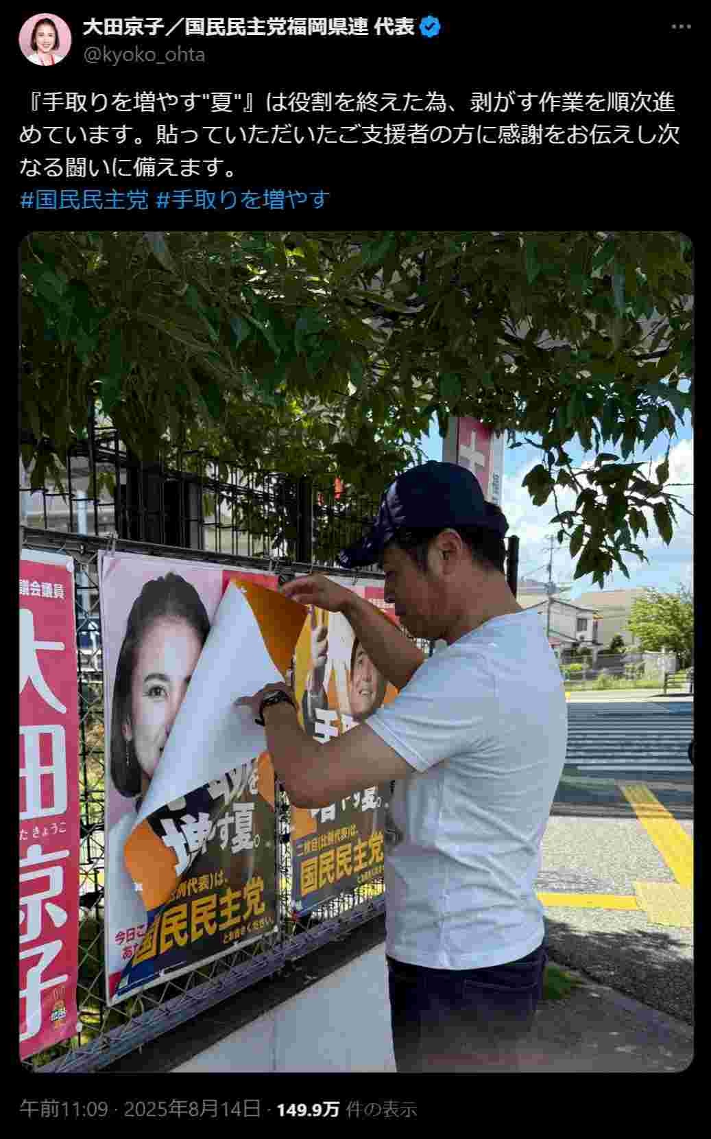 国民民主党「【手取りを増やす夏】のポスターは役割を終えたので張り替えます」⇒ブッ叩かれまくる