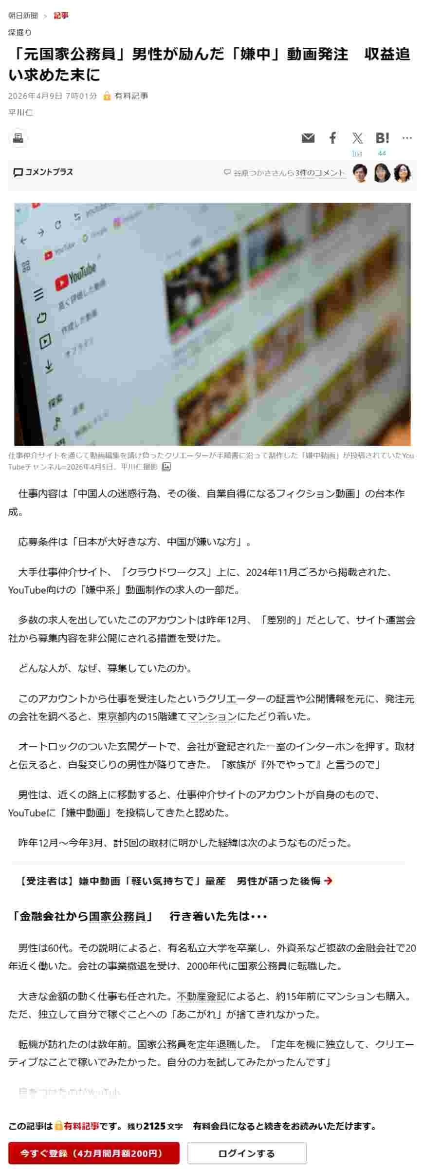 ヘイトでこづかい稼ぎ。おぞましいけど読んでください有料記事がプレゼントされました! 4月10日 13:03まで全文お読みいただけます。