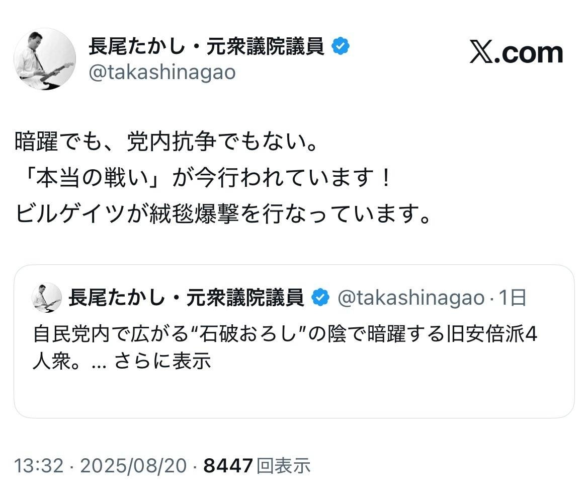 安倍派は議員も支持者も参政党と同じレベルだら - 6 : 2025/08/22 14:38:45 4tSbD