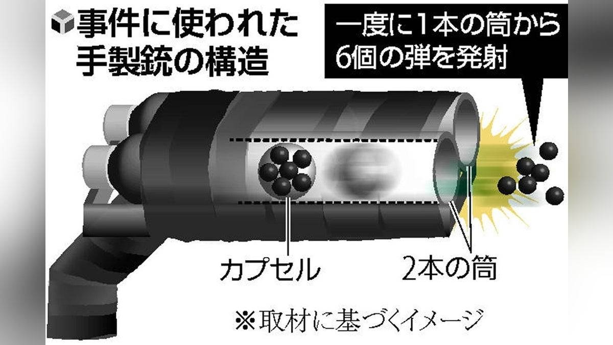 - 手製銃「一発で弾丸6個を発射」、筒2本束ねて固定…試作重ね殺傷能力高い銃使用か