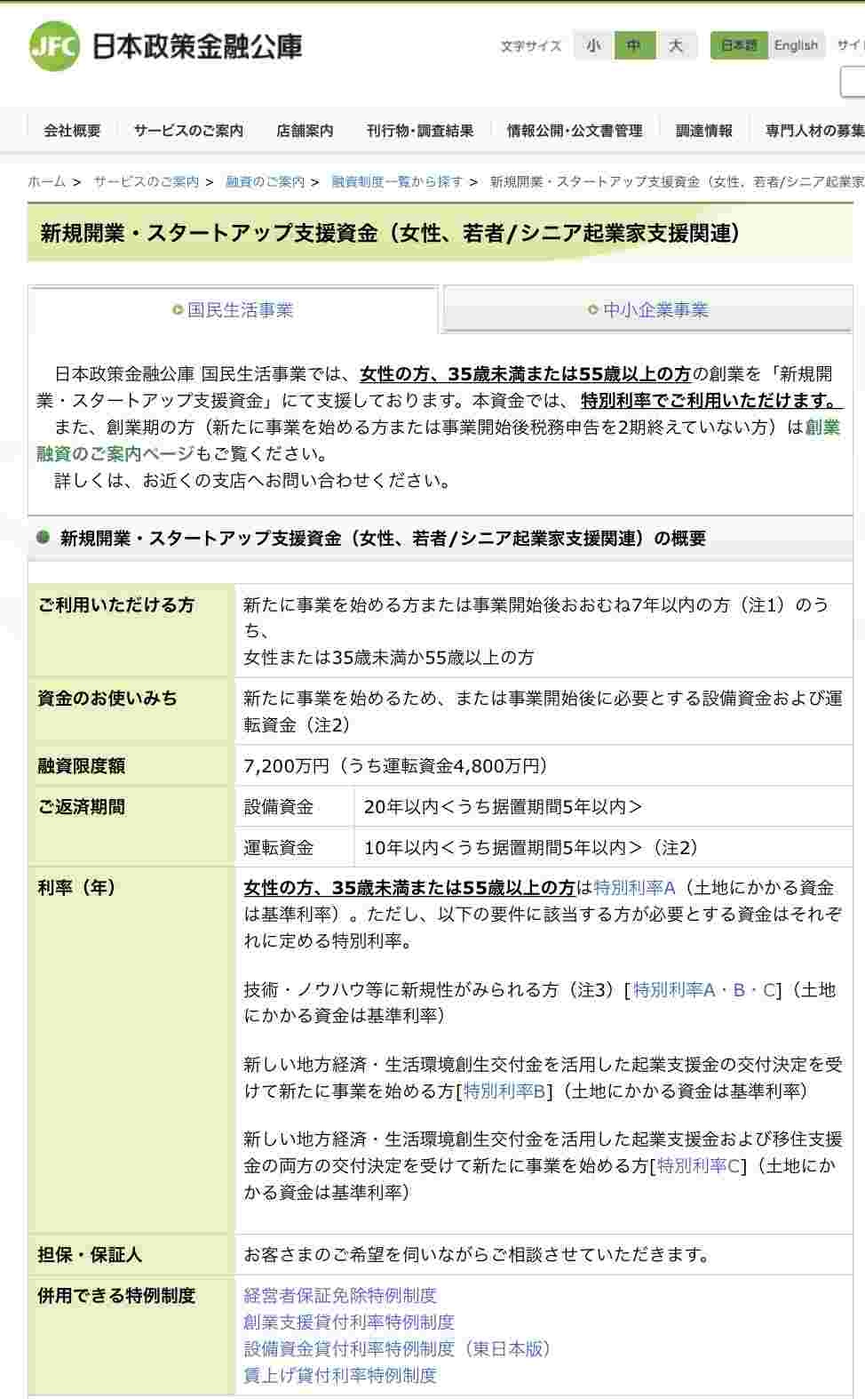 - 新規事業・スタートアップ支援資金(女性、若者/シニア起業家支援関連 除:氷河期男性)