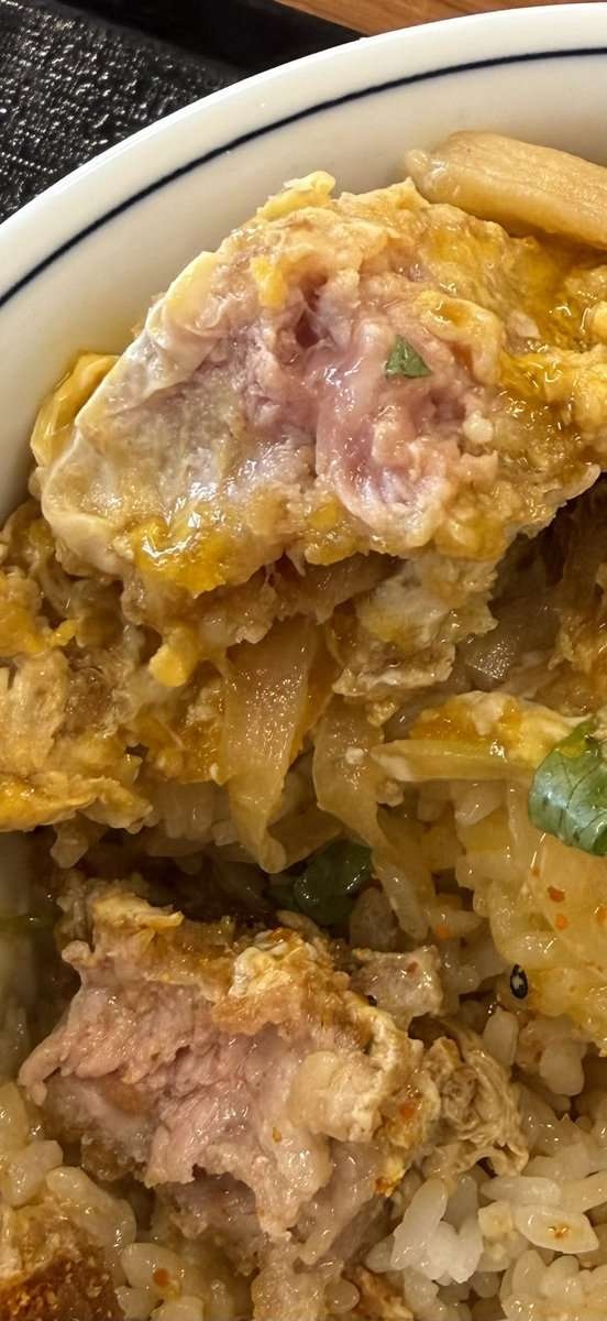 全然違うお店ですが、先日同じくカツ丼食べて明らかに食感と味がやばくて衣向いたら生焼けでした…