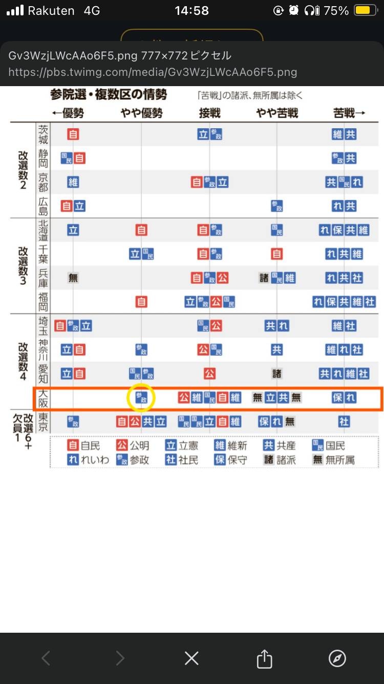 大阪 参政トップ次点維新