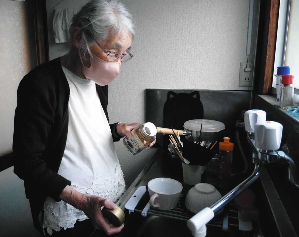 部屋は電気代を浮かすため、常に薄暗い。洗濯機が買えず、洗濯物は手洗いだ。5、6年前に壊れてから、直せていないポットが床に転がる。節約してもしきれず、「ストレスだらけ。われながら情けない」と言葉を詰まらせた。
