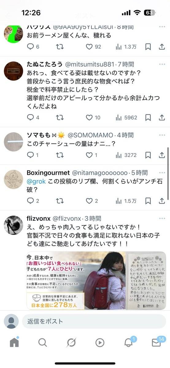 - 批判してる奴ら 食べたのが安倍晋三や高市なら大絶賛してるんだよな