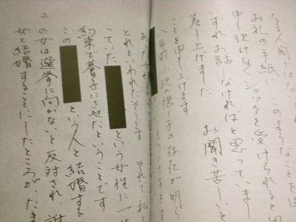 お礼の手紙にこのようなことを申し上げるのは大変申し訳けなくショックを受けられると思いますが、いずれお話しなければと思っていましたのでこの手紙を差し上げました。お聞き苦しいと思いますが今迄のこどを申し上げます。