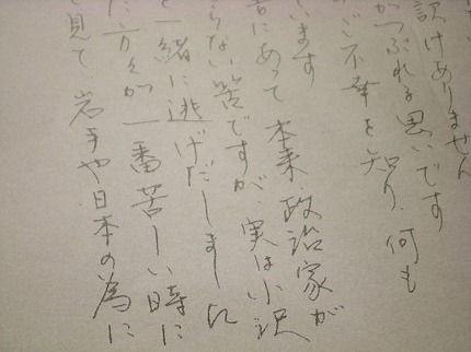 - 「さよなら、小沢一郎(元民主党代表)」 便箋11枚!「妻からの離縁状」