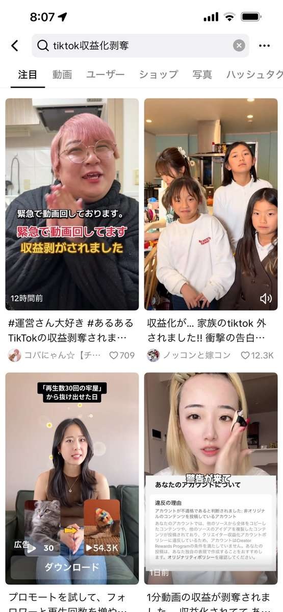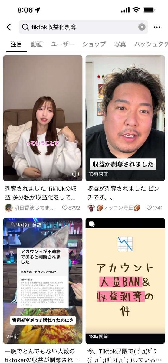 収益剥がされ3日たったら復活してたとか言うティックトッカーが居たな
