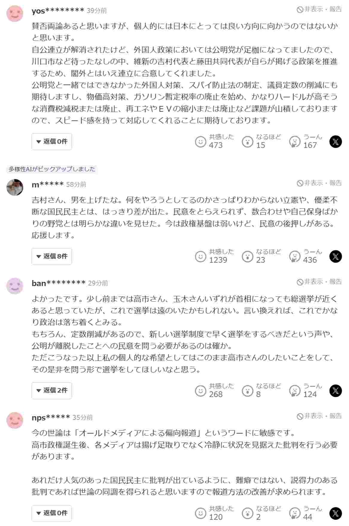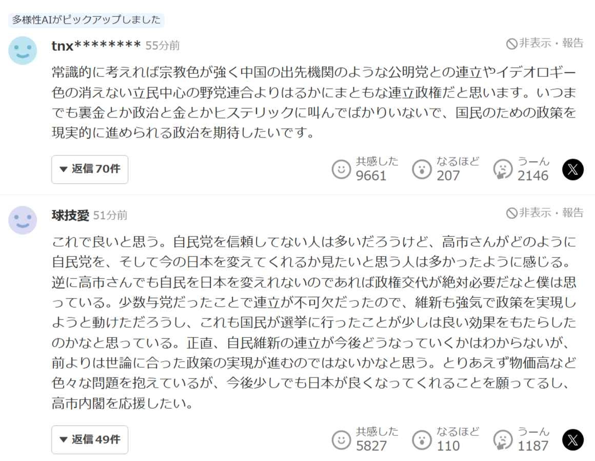高市・維新・N国の愛国連立政権が樹立 ヤフコメは歓迎の嵐