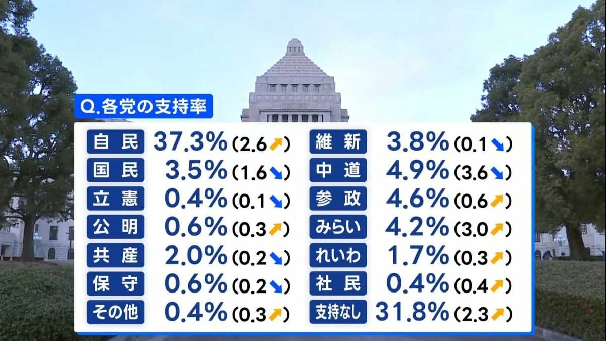 最新のJNNの世論調査で、高市内閣の支持率が、前回の調査から1.9ポイント上昇して71.8%でした。一方、「支持しない」と答えた人は、先月から1.6ポイント下落して24.9%でした。