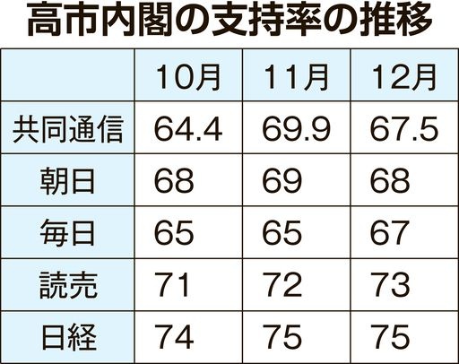 高市政権、続く高支持率 積極財政や対中強硬姿勢評価か 「なぜこんなに高いのか」政権内に困惑も