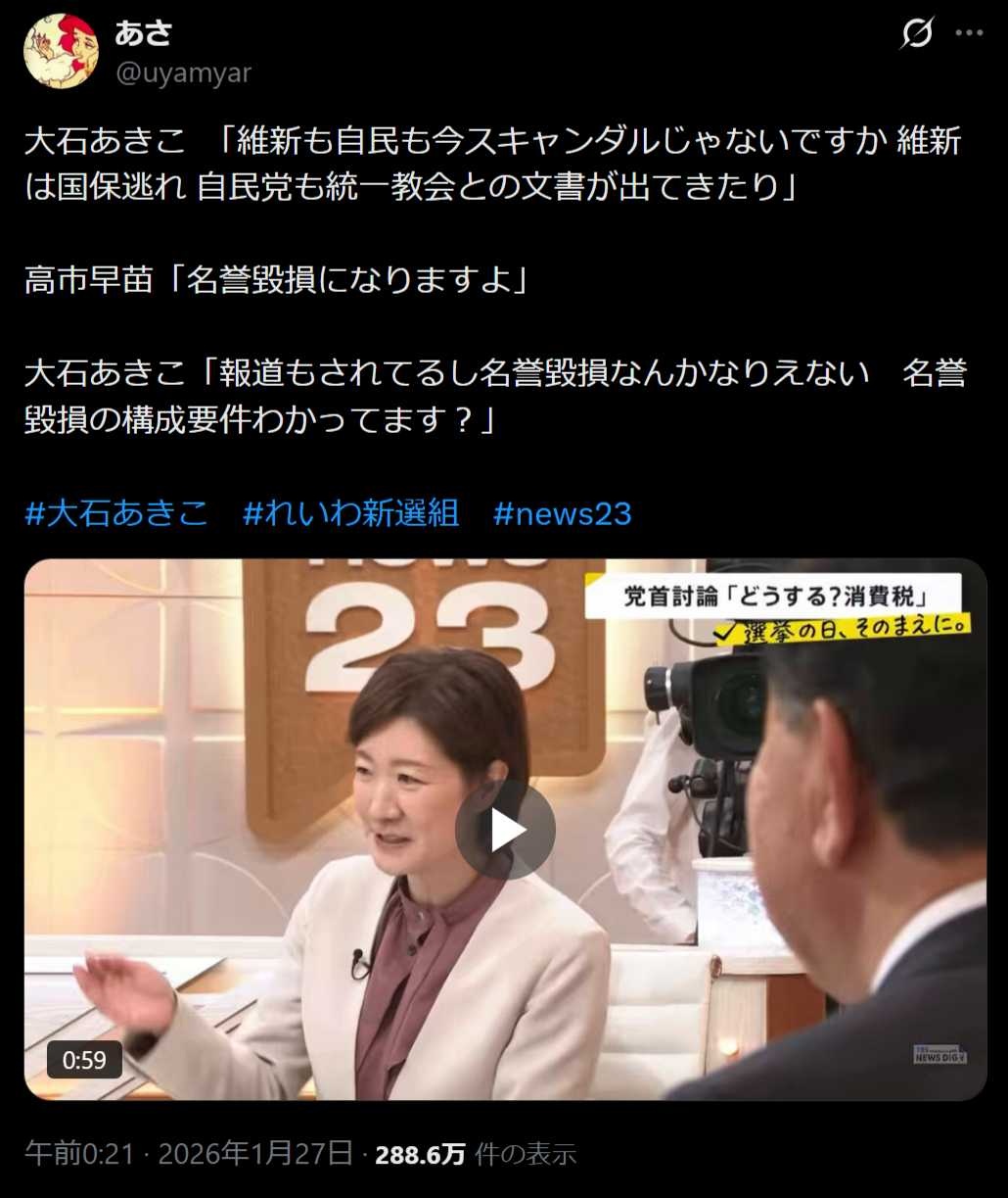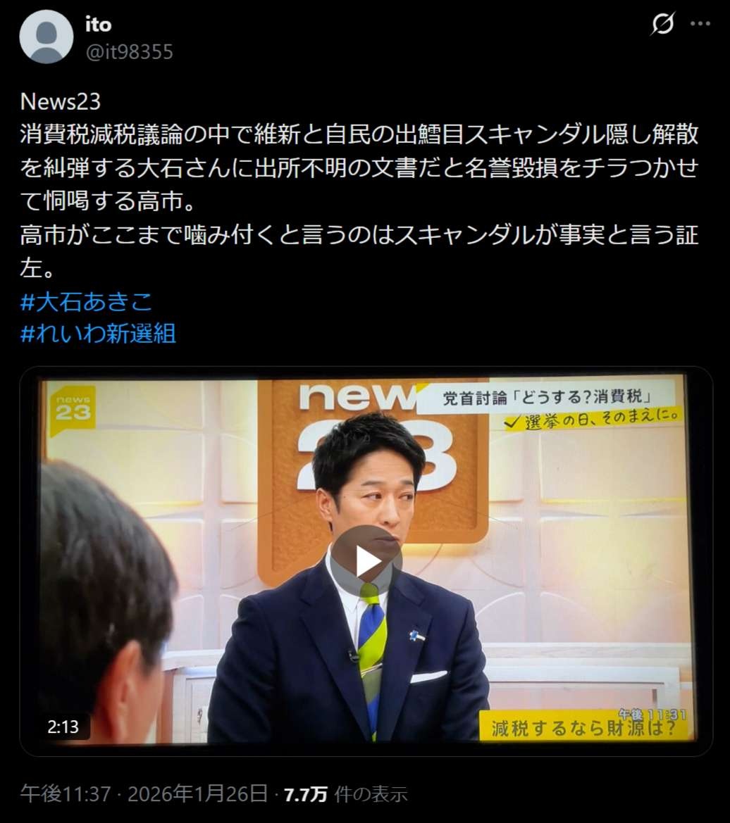 https://x.com/asahi/status/2015804431909138856▼統一教会のTM報告書について突っ込まれて「出処不明の文書」「名誉毀損」とキレる