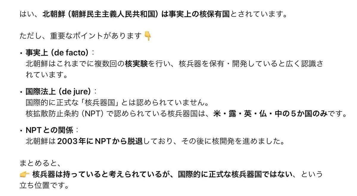 核保有国=核運用技術を持ってる国 ではなく現状許可されている国という意味国連に反し違法に核兵器を持っているという形で議論を進めていたのが高市のアドリブによって隙が出来た