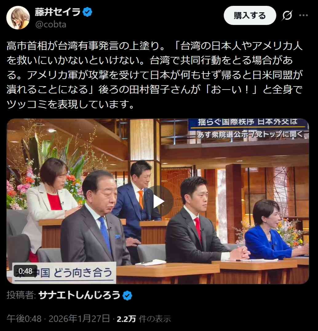 - 台湾発言で日中関係がおかしくなったときに「もう踏み込んだ発言はしない、思ってても言わない」とか言ってたくせに