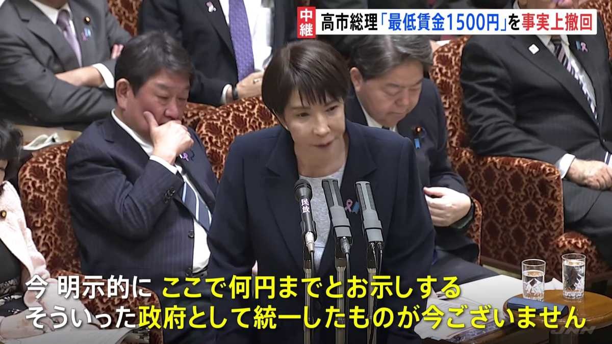 高市総理が石破政権の最低賃金目標を事実上撤回 「2020年代に全国平均1500円」を明示せず「政府として統一したものはない」
