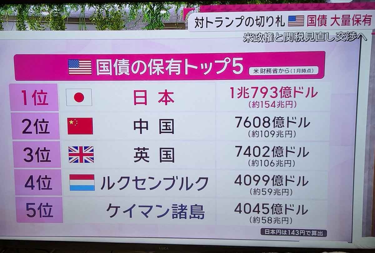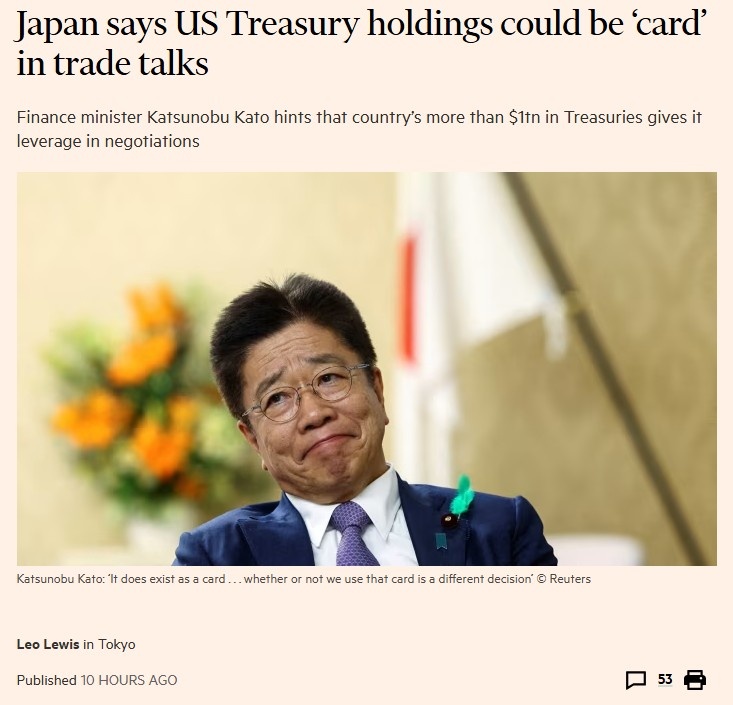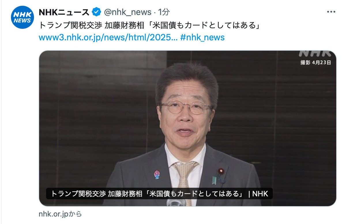 🇺🇸「日本は関税を容認出来ない場合、米国債を売却するとすると脅してきた」